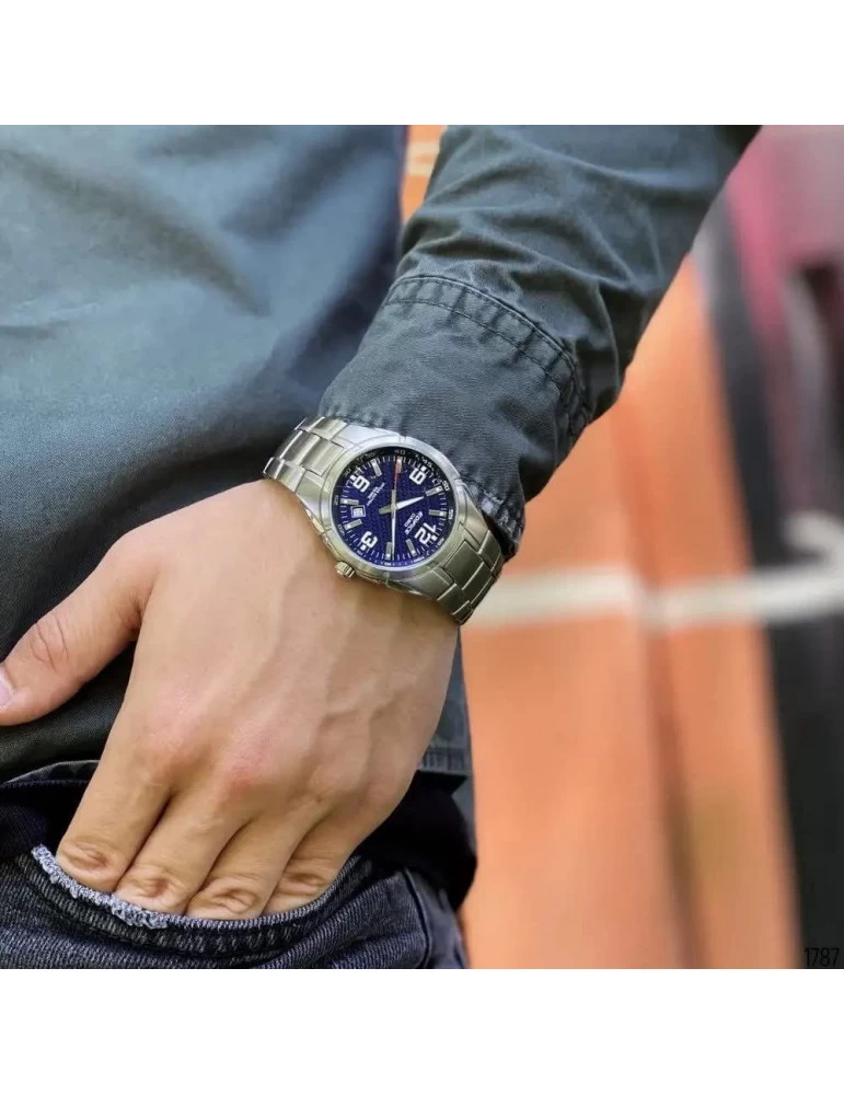 Cette montre habille votre poignet avec une grande élégance grâce à son bracelet en acier argenté et son cadran bleu.Taille du boîtier : 40 mm.