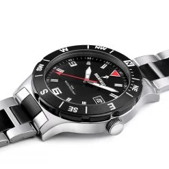 Montre Ruckfield 685048 – Dateur Boîtier Acier Noir Bracelet Cuir Marron Foncé Cadran Noir Homme