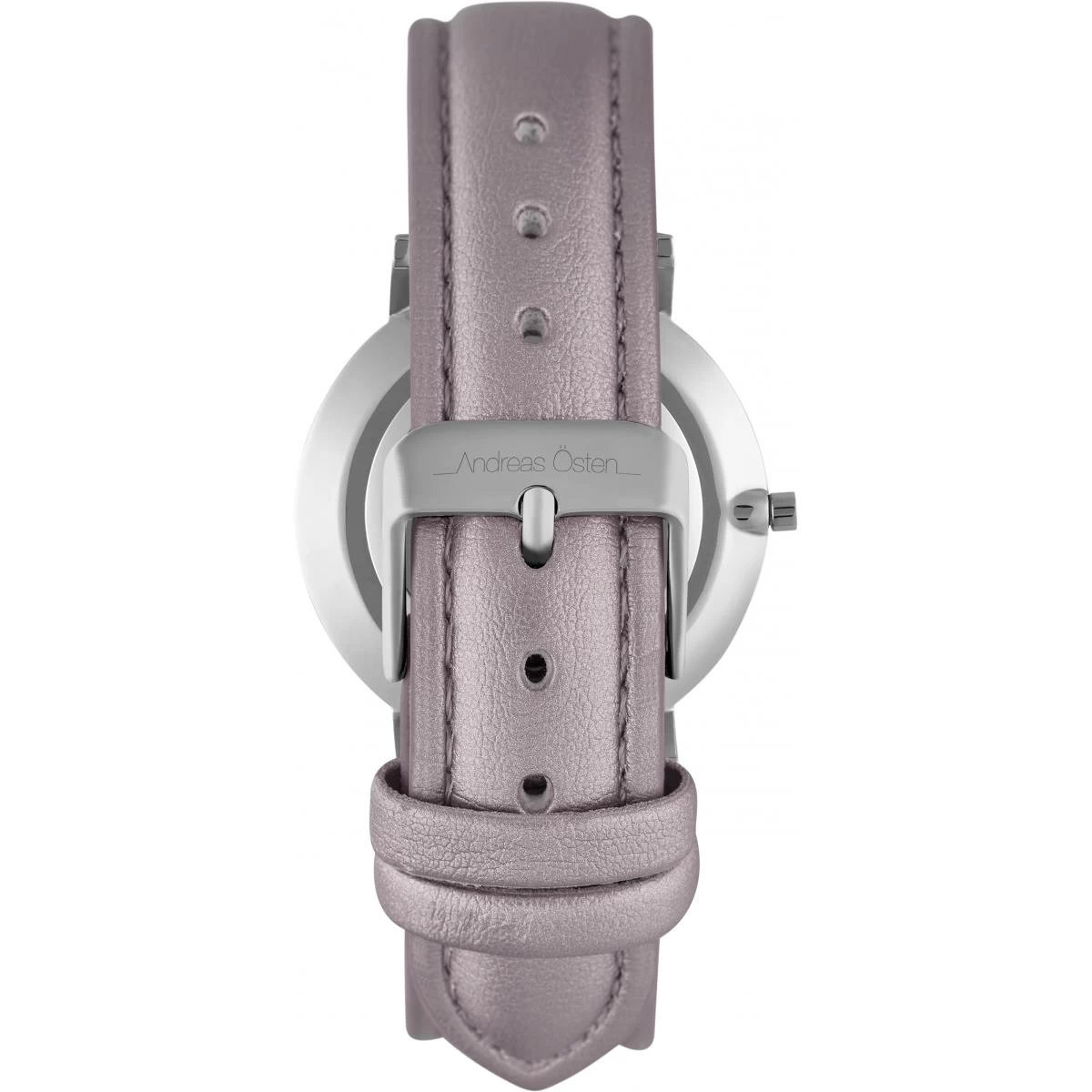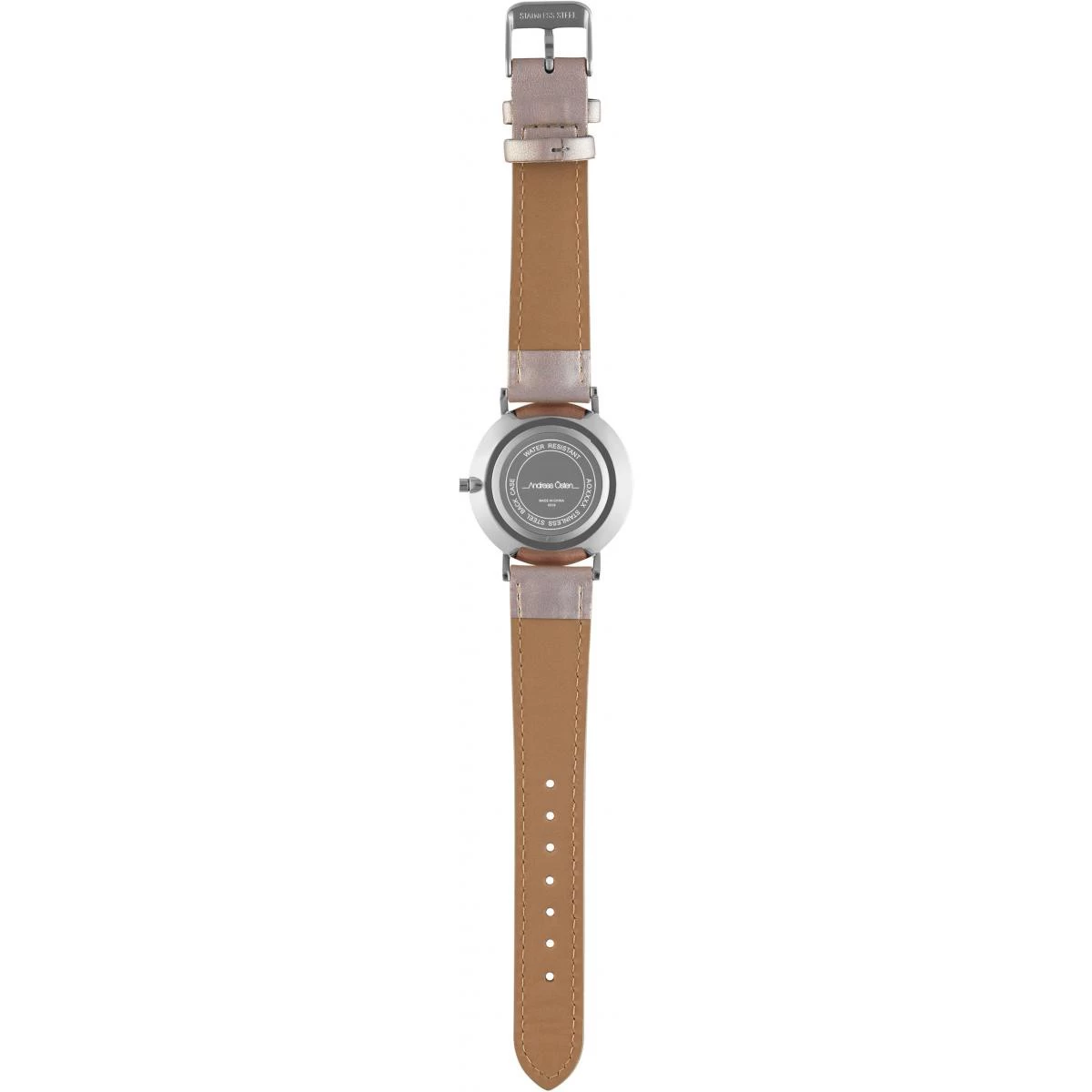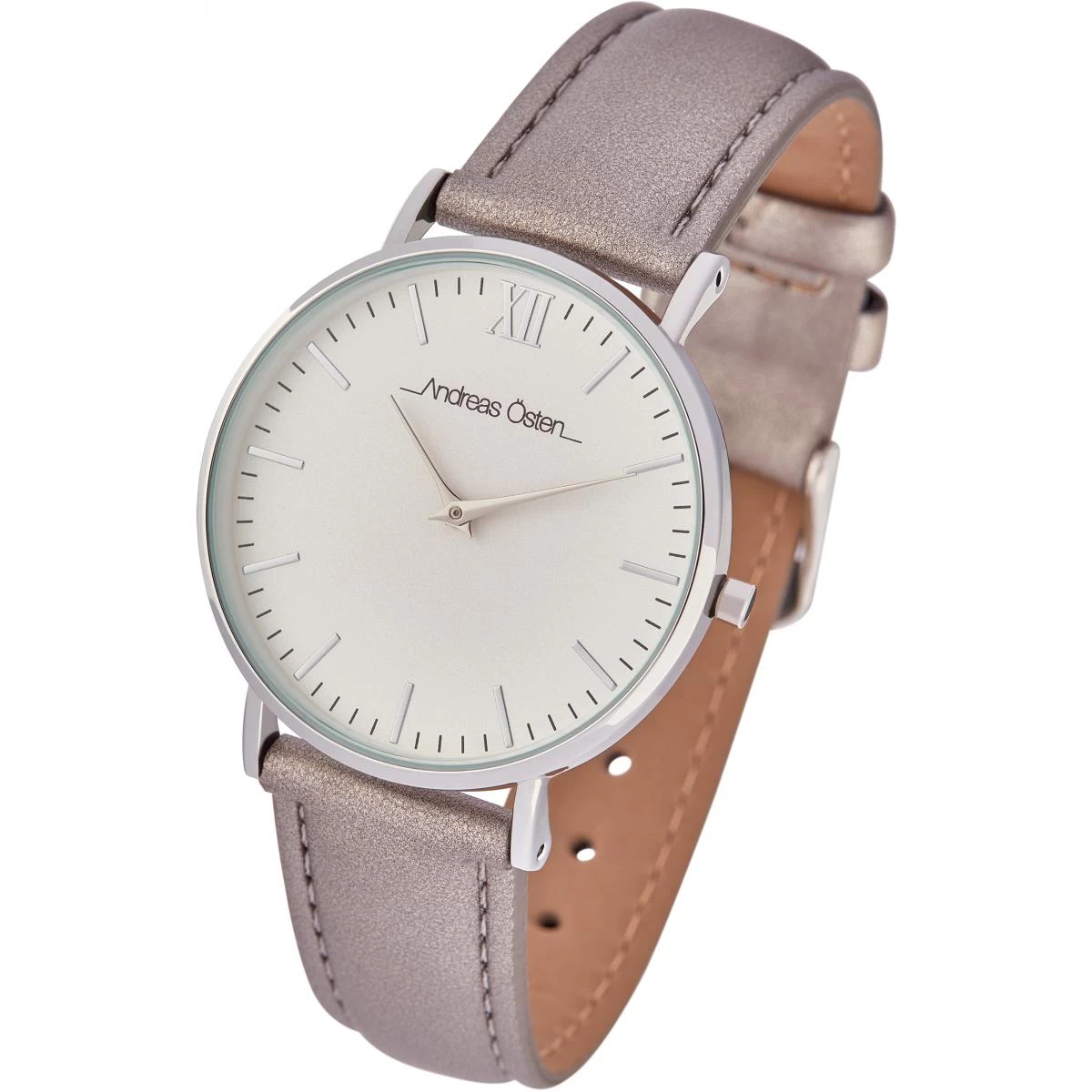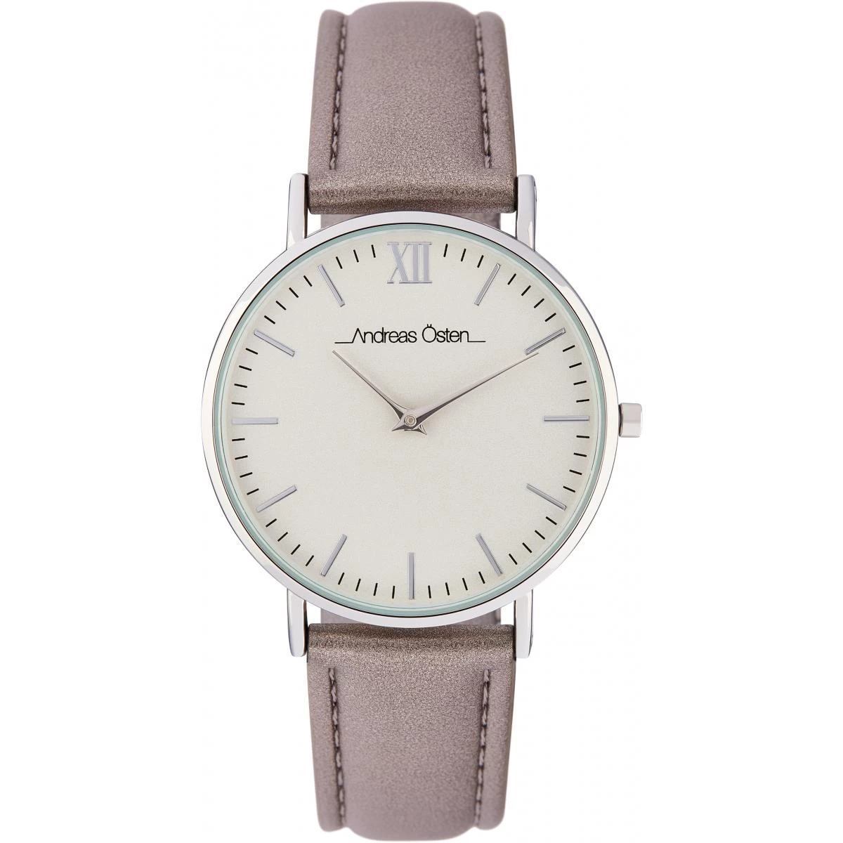 Montre Andreas Osten AOS18005 avec bracelet en cuir gris, boîtier en acier argenté et cadran blanc.