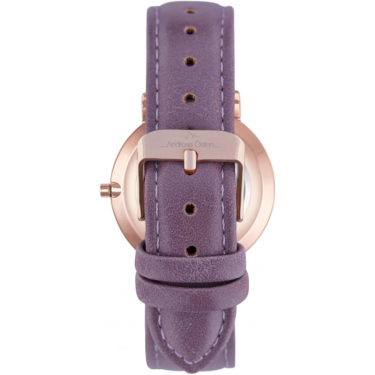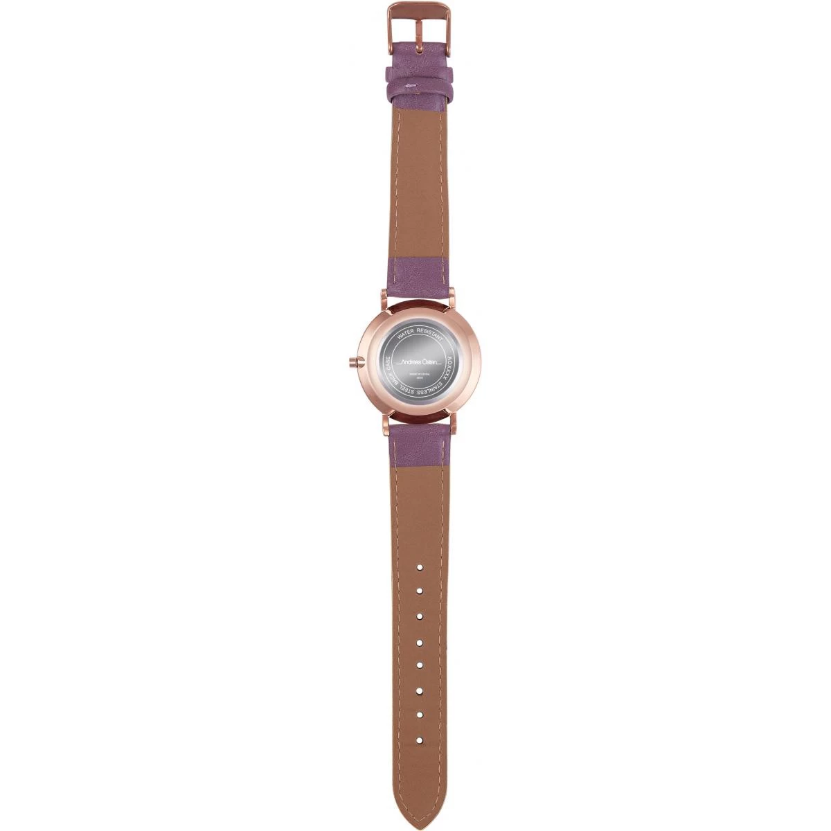 Montre Andreas Osten AOW18012 avec bracelet en cuir violet, boîtier en acier doré rose et cadran violet