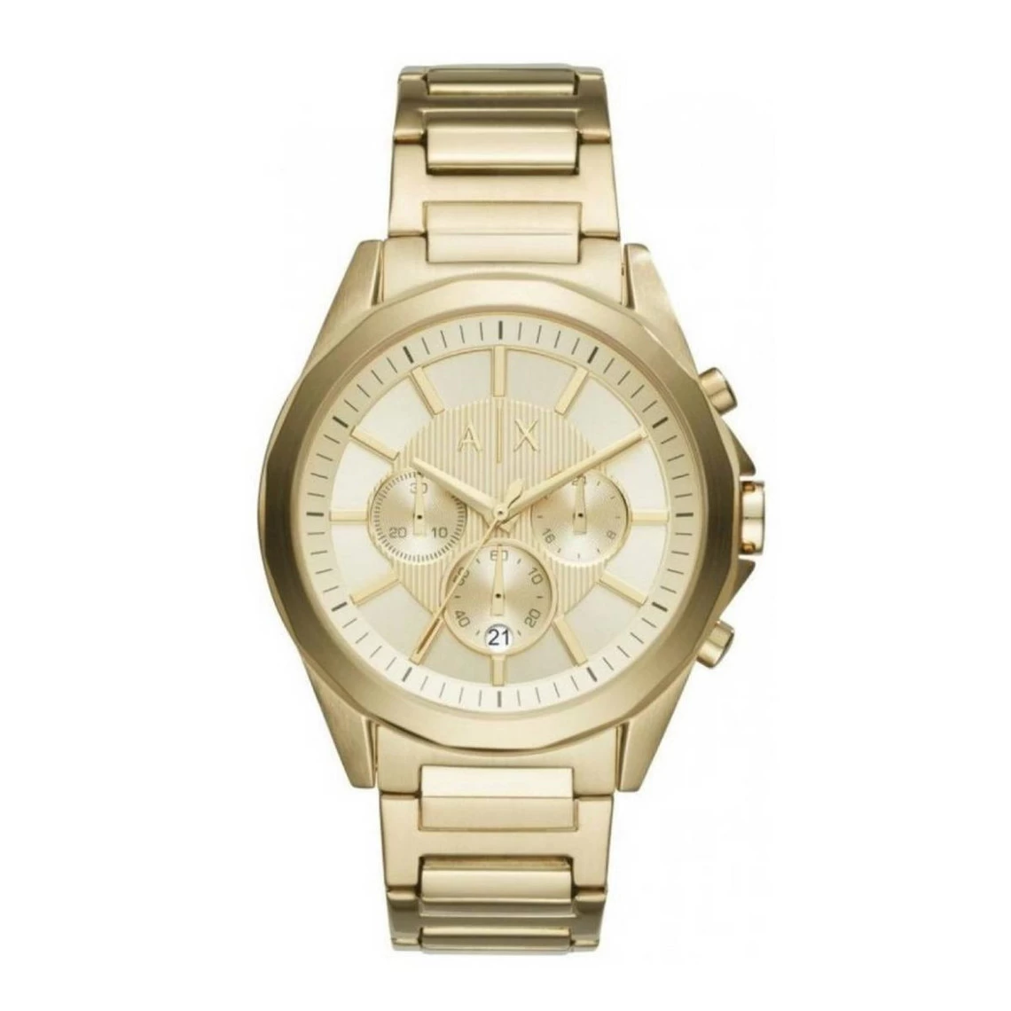 Nouveauté, cette montre Armani Exchange est dotée d’une couleur doré et d’une fonction chronographe sunray avec cadran intérieur rayé, associé à un élégant boîtier en acier inoxydable et à un bracelet en totale adéquation.