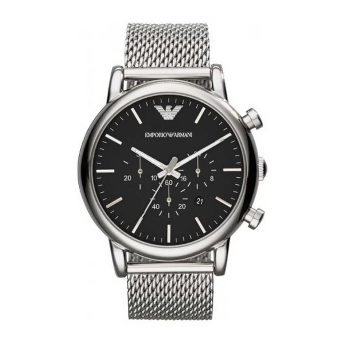 Optez pour cette superbe Montre Armani Montres AR1808 et ajoutez une touche d’élégance à votre look. Le beau contraste de couleurs entre le bracelet en maille milanaise argentée et la teinte noire profonde du cadran renforce le côté chic de cette montre tendance. Cette montre chronographe est un accessoire de mode idéal pour un style chic et branché.