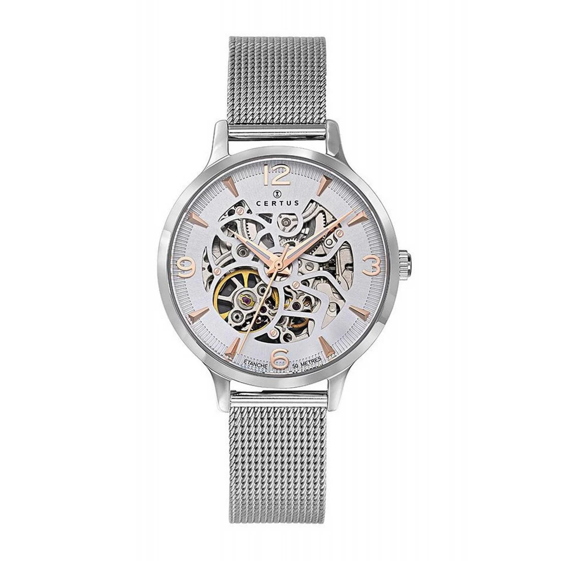 Sublimez votre poignet avec cette Montre Femme CERTUS 641400 – Bracelet Acier Argent. Elle se caractérise par les touches de doré la magnifiant, ainsi que la finition squelette de son cadran analogique. Un accessoire brillant qui ne peut qu’embellir vos looks avec élégance et raffinement.