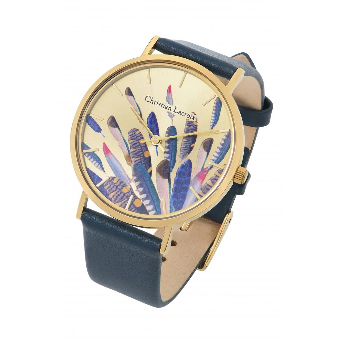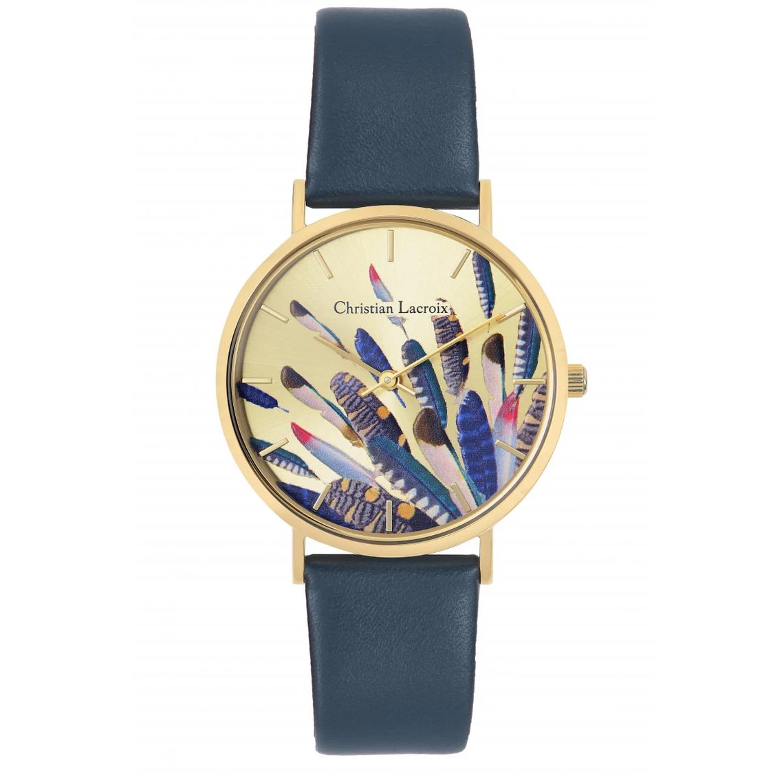 Mixez la modernitĂ© et la l’Ă©lĂ©gance avec la Montre femme Christian Lacroix CLW311. Son bracelet en cuir bleu marine s’associe parfaitement au boitier en acier dorĂ© et chic. La touche fĂ©minine se retrouve dans son cadran Ă plume multicolores.