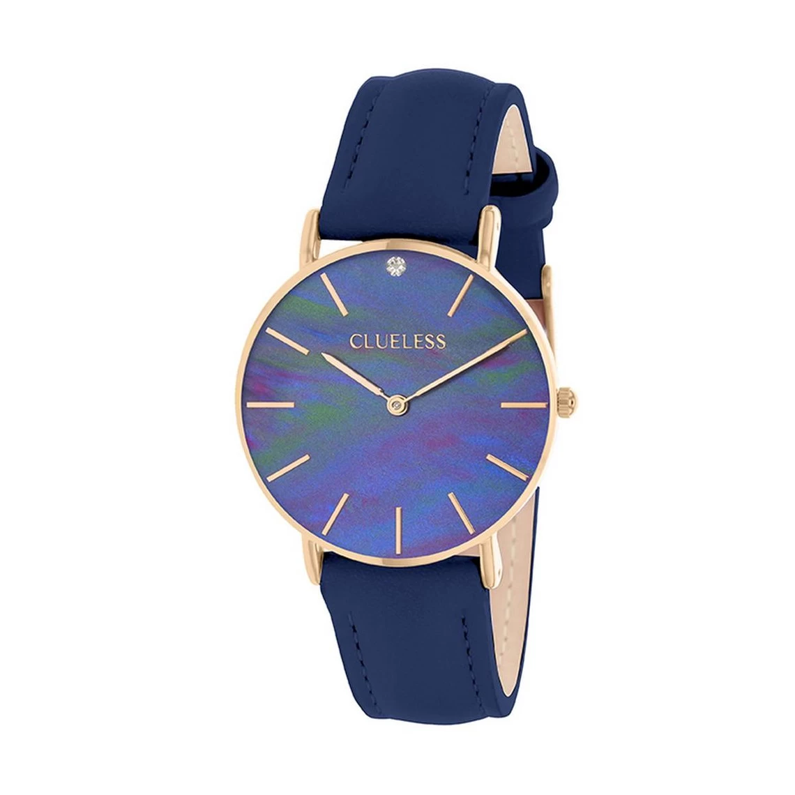 Cette Montre Femme Clueless BCL10182-108 – Bracelet Cuir Bleu mélange les styles. Elle possède une dominance en couleur bleue sur son bracelet et son cadran. La couleur dorée s’ajoute aux détails, sur la plaque du boîtier et les fermetures.