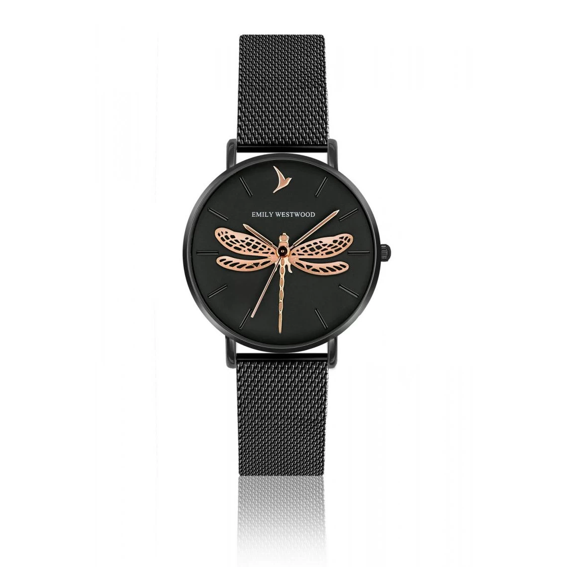 On adore la sobriĂ©tĂ© et l’élĂ©gance de cette Montre Femme Emily Westwood EBS-3318 – Bracelet Acier Noir. On remarquera aisĂ©ment son cadran analogique arborant un motif en forme de libellule, le logo et la signature de la marque.Â