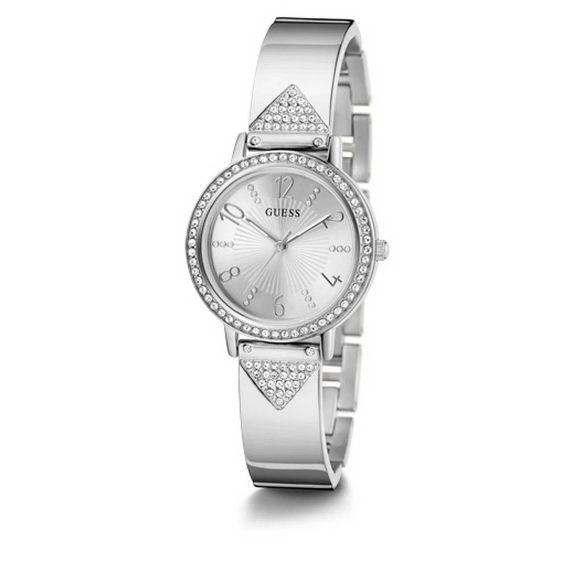 Difficile de ne pas craquer pour le design de cette Montre Femme Guess LADIES DRESS GW0474L1 – Bracelet Acier Argent. Elle se remarquera aisĂ©ment grâce Ă l’éclat des strass la magnifiant et au look de son cadran analogique Ă trois aiguilles.