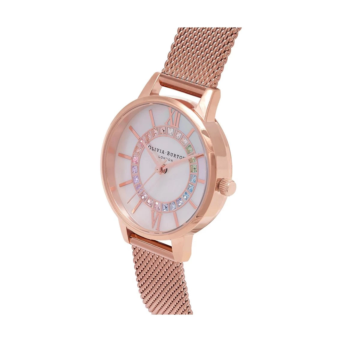 Cette Montre Femme Olivia Burton 3 AIGUILLES OB16WD95 – Bracelet Acier Doré rose attire tous les regards. Son boîtier circulaire est porté par un bracelet doté d’une finition en maille milanaise. Un cadran agrémenté de pierres aux reflets multicolores l’accompagne.