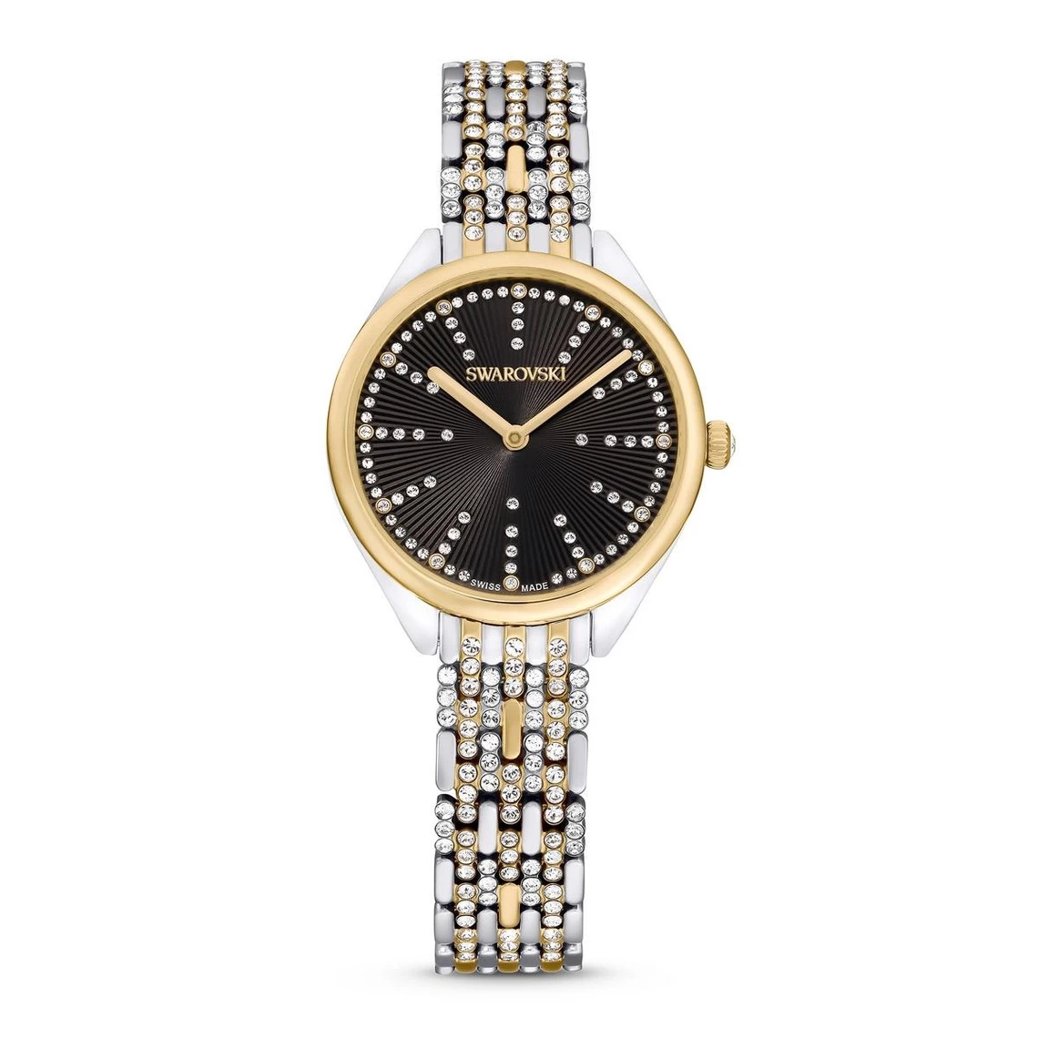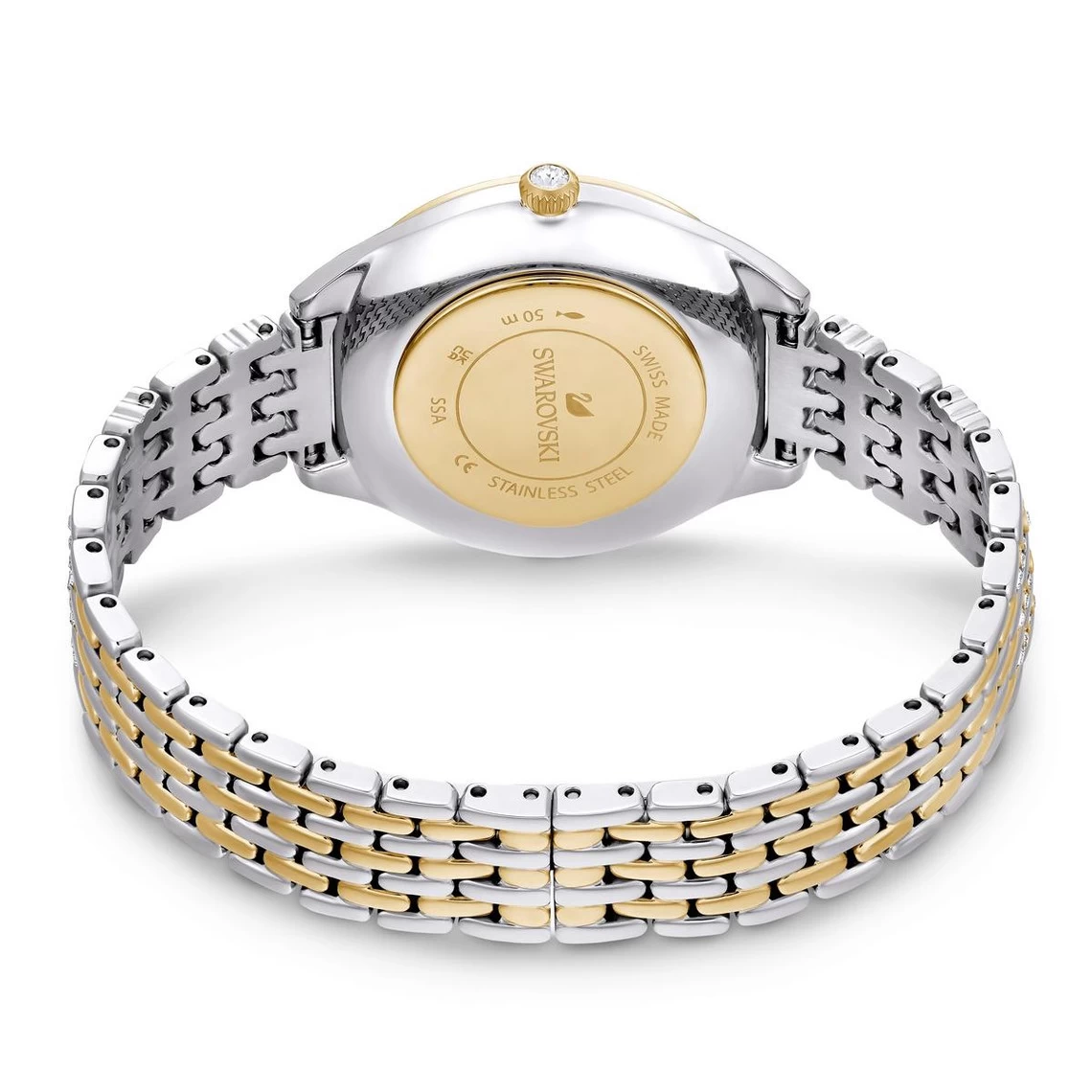 La Montre femme Swarovski CEX ATTRACT 5644056 – Bracelet Acier Doré, étincelante et glamour, illumine les journées avec ses 150 cristaux lumineux. Ce modèle offre un cadran soleillé contrastant mis en valeur par un boîtier lumineux en accord avec le reste de la pièce. Le bracelet est souple pour le confort du poignet.