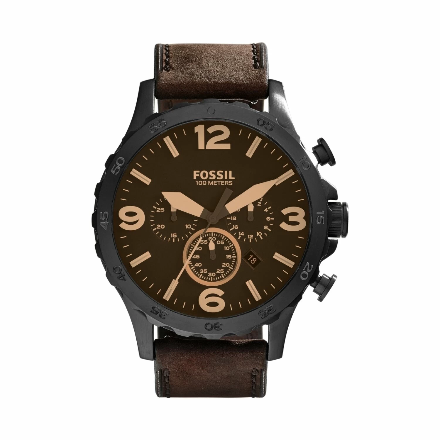 Montre à quartz avec boîtier en acier PVD de 50mm et bracelet en cuir. Elle dispose de fonctions chronographe et date. Elle plaira aux hommes voulant porter une montre de sport