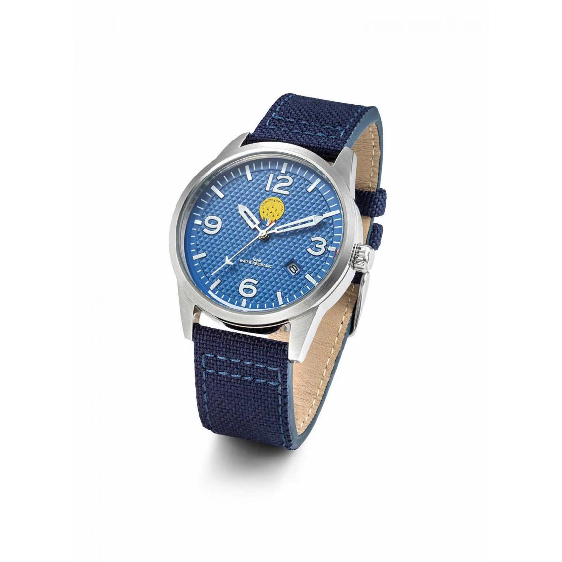 Laissez-vous conquérir par le design sobre de cette Montre Homme 668509 Patrouille de France. Elle se compose d’un magnifique bracelet en tissu bleu assorti au cadran à motif clouté. Le boîtier en acier argenté apporte une touche tendance et décontractée au poignet.