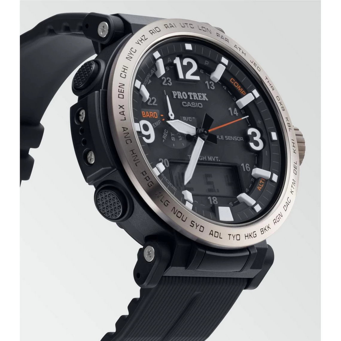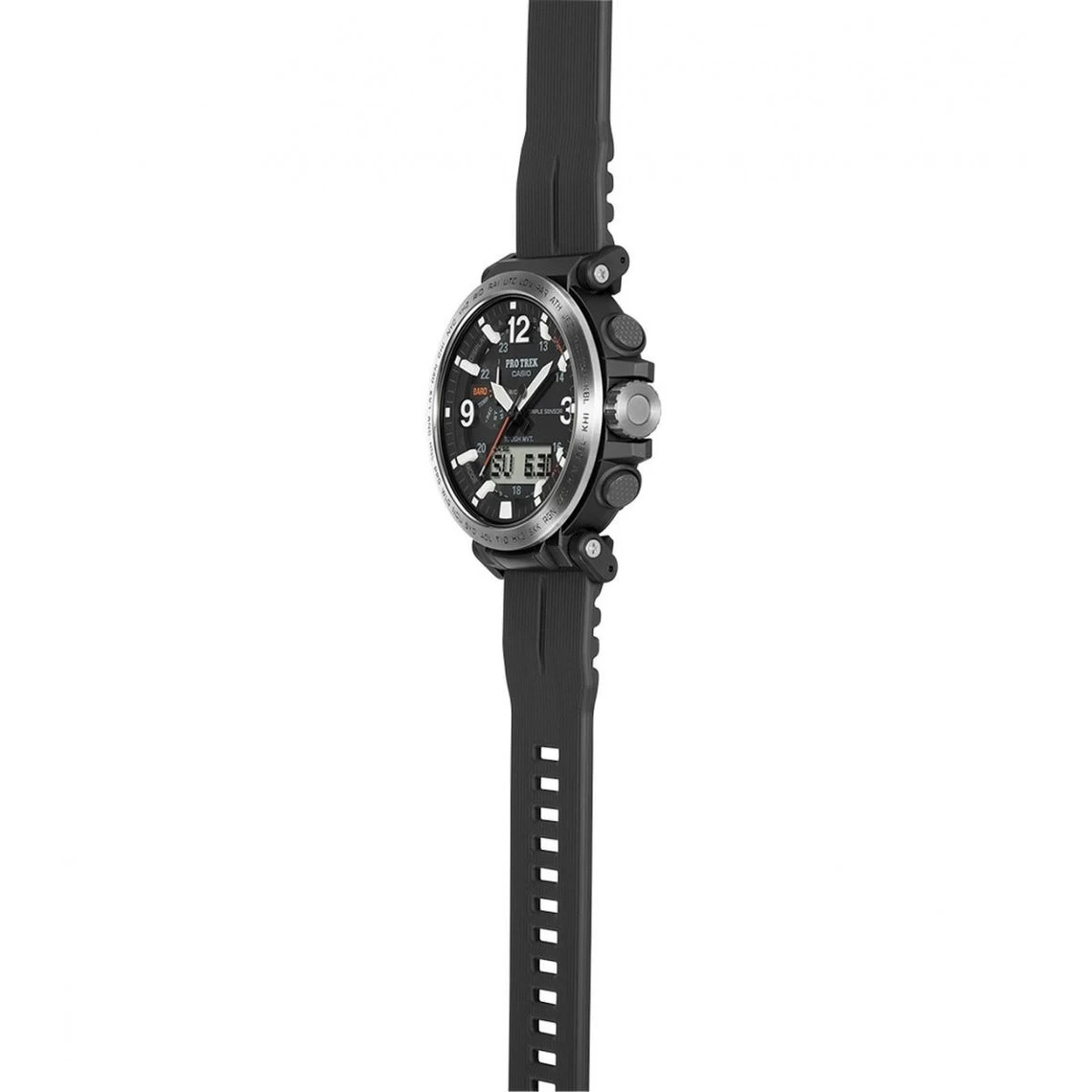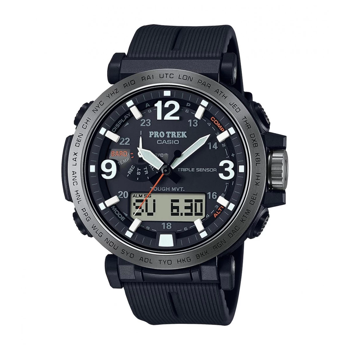 La Montre Homme CASIO PRW-6611Y-1ER – Bracelet Noir est l’accessoire indispensable pour les adeptes de trekking en conditions extrêmes. Ses nombreuses fonctionnalités pratiques évoluées vous facilitent considérablement la vie. Le modèle possède un cadran à affichage numérique et analogique, au design sophistiqué, présentant plusieurs indications utiles. L’éclairage LED intégré et l’accumulateur d’énergie solaire vous assurent une praticité inégalée en toute circonstance. L’accessoire se distingue par sa résistance supérieure aux chocs et aux températures extrêmes (grand froid jusqu’à -10°C et chaleur élevée jusqu’à 60°C.