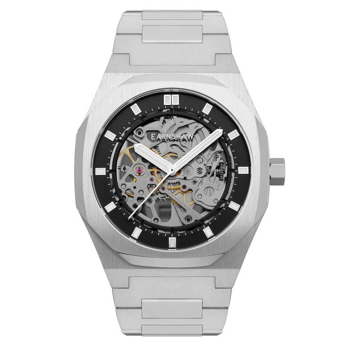 Le design tendance et assez imposant de cette Montre Homme EARNSHAW DRAKE – ES-8142-22 Bracelet Acier argent ne saura que vous séduire. Elle se distingue par son cadran à la finition squelette, disposant d’un pourtour noir, d’un chemin de fer des minutes, d’index rectangulaires et de trois aiguilles.