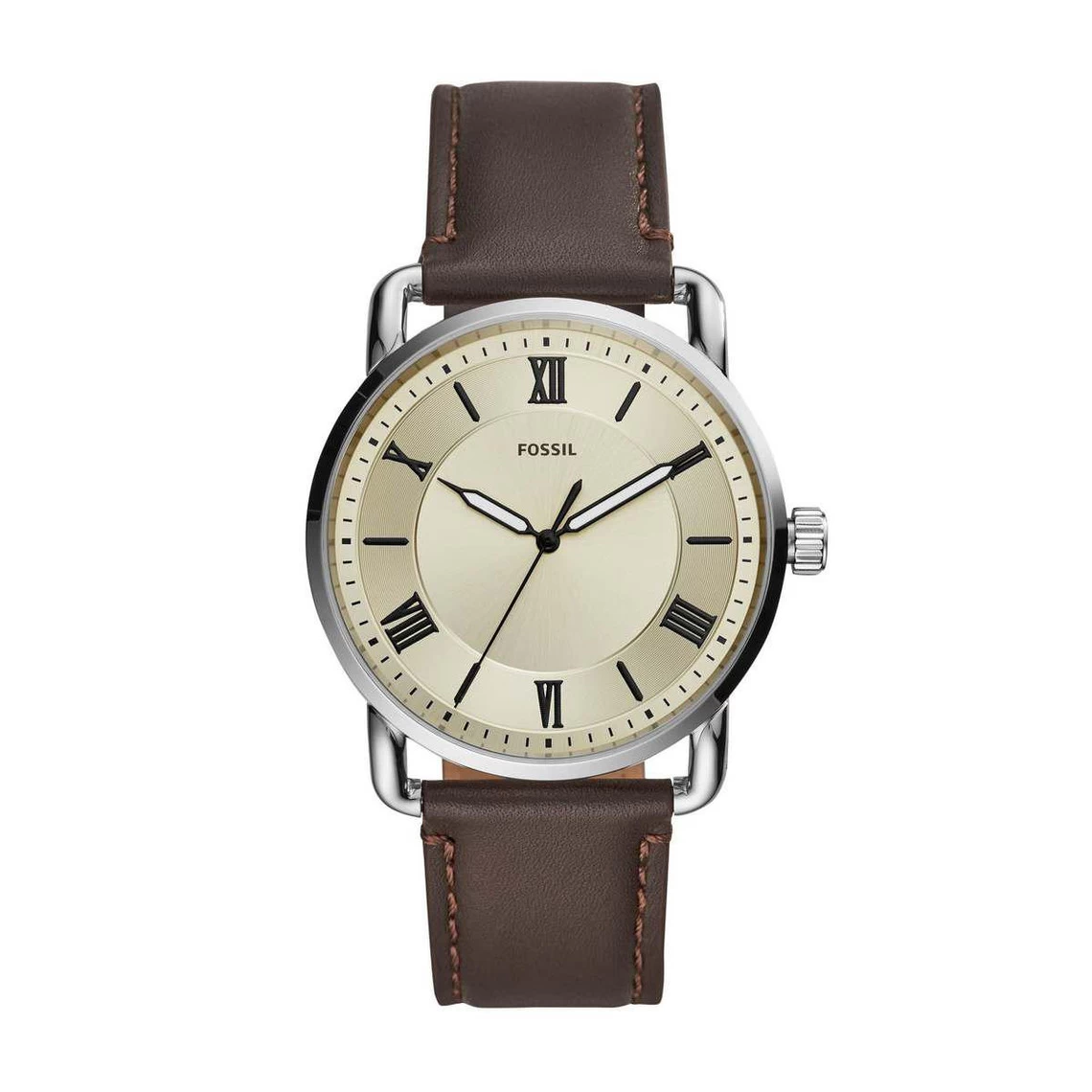La Montre Homme Fossil FS5663 de la collection Copeland se destine à ceux qui aiment les garde-temps sobre et élégant. Elle est composée d’un boîtier rond en acier inoxydable argenté. Avec son cadran couleur crème s’accorde avec élégance avec son bracelet en cuir marron. Les aiguilles avec traitement luminescent, le chemin de fer et les index visuels facilitent la lecture de l’heure.