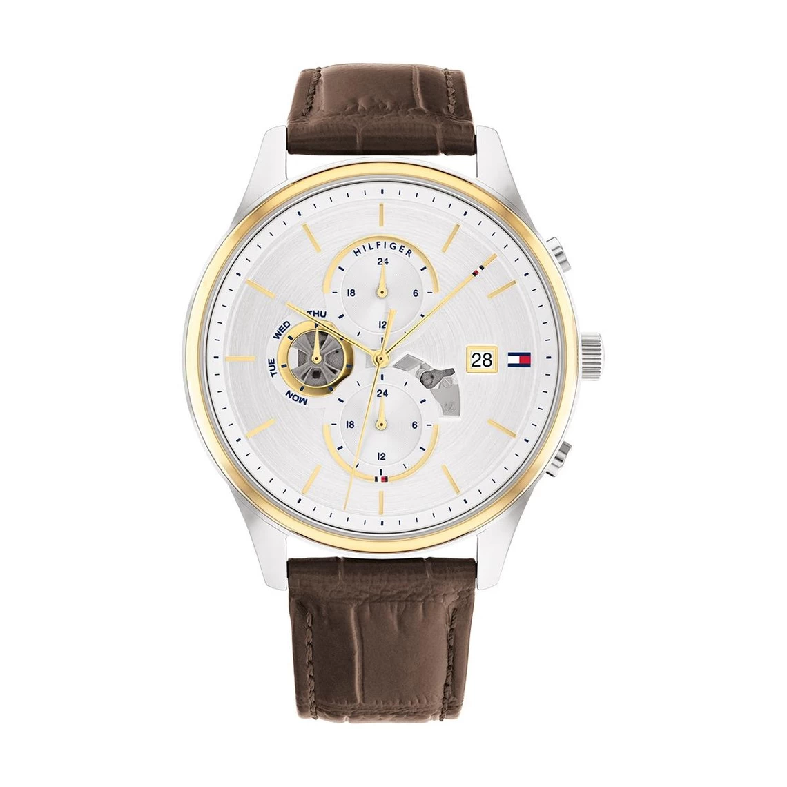 Cette Montre Homme Tommy Hilfiger 1710501 – Bracelet Cuir Marron de la collection WESTON apportera la touche chic à votre style. D’inspiration vintage, elle donne de l’allure à celui qui le porte. Son boîtier en acier lumineux révèle un cadran argenté doté de trois compteurs. Le mécanisme apparent apporte une touche sophistiquée au modèle. Elle promet un port élégant avec son bracelet en cuir aspect croco.
