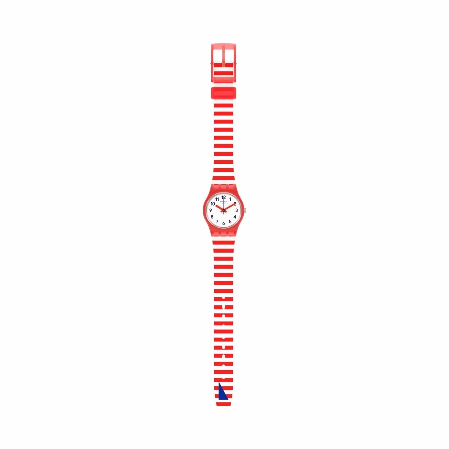Destination le littoral ! Ce modèle arbore des rayures rouges qui feraient la fierté de n’importe quel marin, alors guettez la voile bleue à l’horizon.